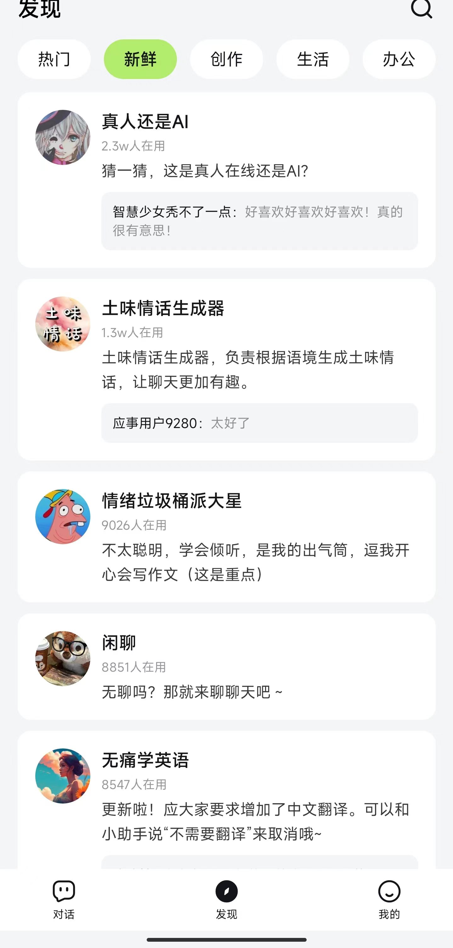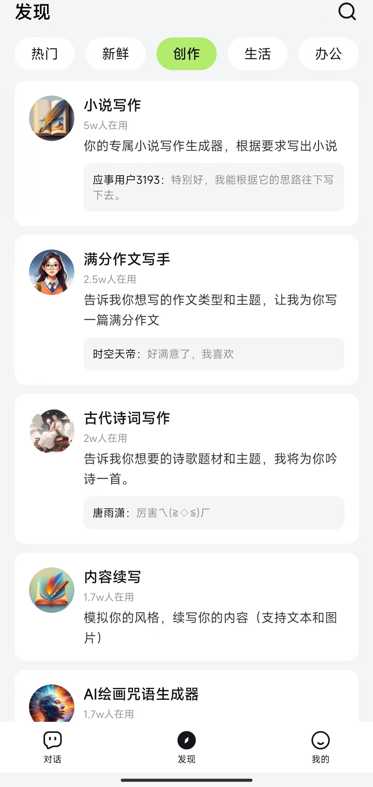 一款非常好用的ai生成应用软件工具,用户可以在这里看到很多关键词信息内容,主题丰富,里面的ai智能关键内容可以选择,帮助你生成你喜欢的各种文章哦,支持多种语言!应事是你的 智能助理。通过简单的自然对话,应事可以帮你:- 解答生活问题、情感问题。- 获取专业知识、专家建议。- 创作文案文章、小说诗歌。不管是日常生活还是学习工作,在你需要的时候,应事随时恭候会根据你的需求自动匹配不同的智能体,为你提供多样性和个性化的回复。【创造智能分身】你可以在应事内创建智能体,并融入自己的语言风格与领域知识,打造出专属的智能分身。【软件名称】海螺问问Ai【软件大小】18m【下载链接】:https://pan.xunlei.com/s/VNm9rsYfGPNbscE4xQSZKTNOA1?pwd=xedd#