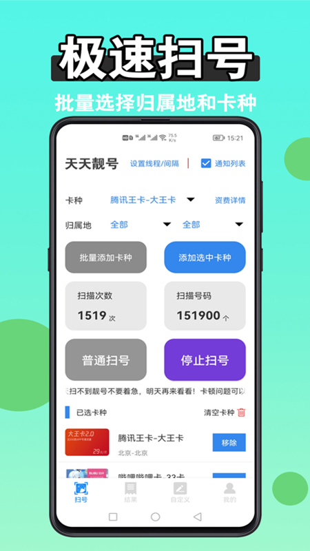 软件名称:天天靓号应用包名:com.saohao.tiantian软件版本:8.0.2软件语言:简体中文软件大小:14MB软件分类:工具授权方式:公益运行环境:安卓系统软件下载地址:https://wwc.lanzoub.com/igQl401ylpna软件介绍:【天天靓号】一款最专业手机靓号扫号工具,可以多线程扫全国各地所有主流卡种靓号!支持扫多种类型,支持自定义,支持一键下单,订单查询等,扫到靓号直接一键下单!简单、易懂,适合所有人群使用!