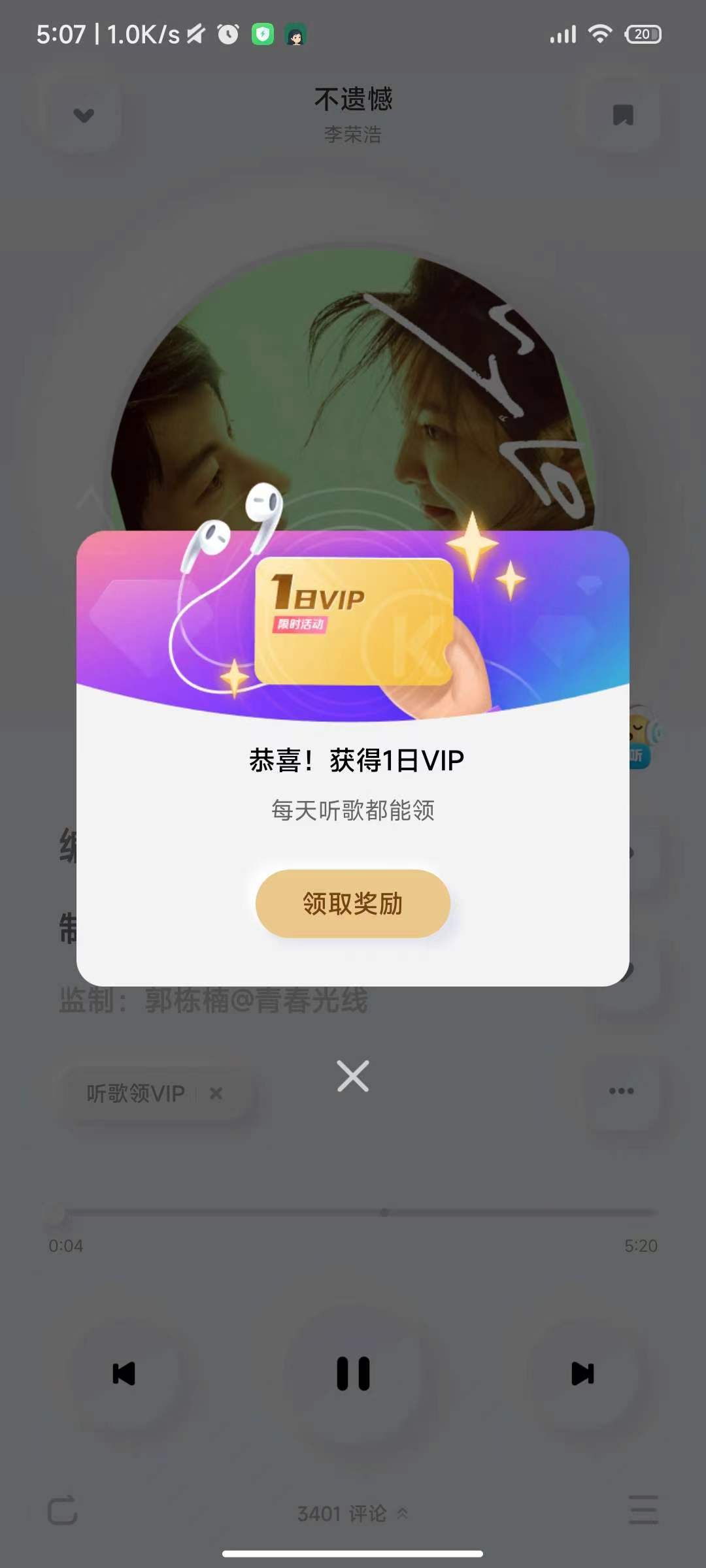 【资源名称】:酷狗音乐概念版【资源版本】:2.6.1【资源大小】:168.69M【资源介绍】:酷狗音乐概念版本身新用户进去就送6个月会员(叫别人给你个邀请码还能再送一个月)组队还能送30-365天 然后每天听歌可以领取1天VIP(相当于无限白嫖)软件已修改每日听歌40秒后自动领取一日会员【下载地址】:https://pan.xunlei.com/s/VNkO7_0KsE7dI3v6bWYbhEP7A1?pwd=j3uu#拿走回复下!!!不然用不了!!!拿走回复下!!!不然用不了!!!拿走回复下!!!不然用不了!!!【修改说明】:软件已修改每日听歌40秒后自动领取一日会员(反正就是不用手动领取了)