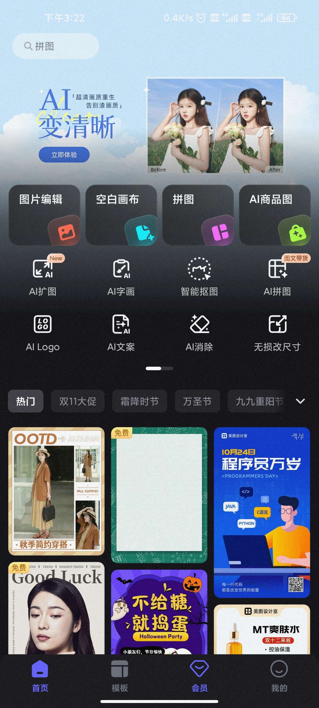 AI设计神器,拥有当下最火的AI字图、AI文案、智能抠图等,海量模板【应用名称】美图设计室【应用版本】6.2.30【适用平台】安卓【特别说明】手机号登录解锁会员【应用简介】美图设计室为用户提供全面的AI智能作图工具,如AI海报、AI商品图、AI消除等,输入一句话或上传一张图AI即可帮你完成设计。更有丰富的商用海报模板,只要“改字换图”就能快捷生成手机宣传海报、自媒体封面等设计物料。让设计更高效。【下载地址】:https://pan.xunlei.com/s/VNkjpn8a923sPw2avgtv4JidA1?pwd=zahp#