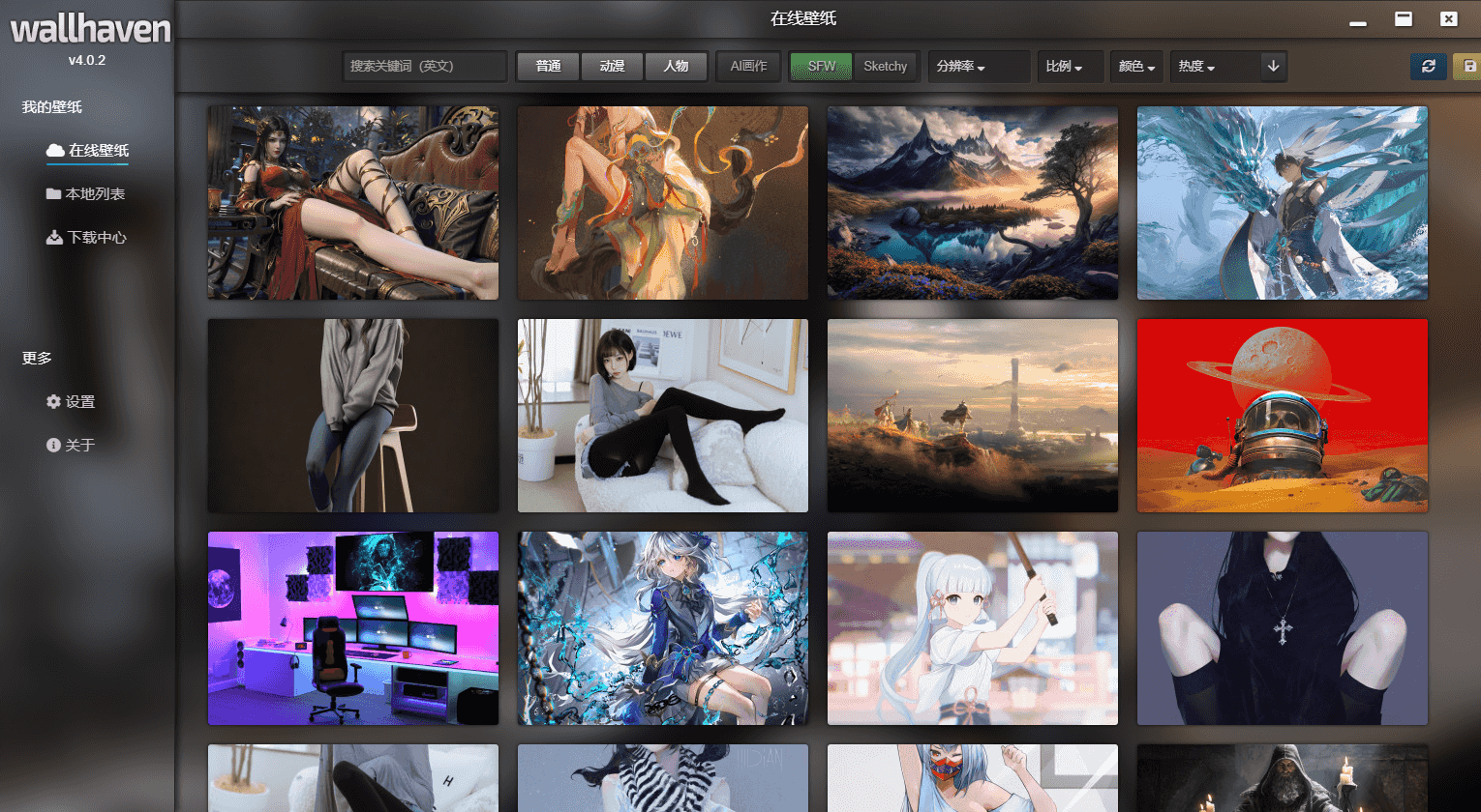 wallhaven.cc 是作者很喜欢的一个壁纸网站,但是每次都需要把壁纸下载保存,然后再手动替换,感觉太麻烦了。所以动手写了该软件,可以直接浏览网站的壁纸,然后一键设置成壁纸。附加功能是可以定时切换壁纸。