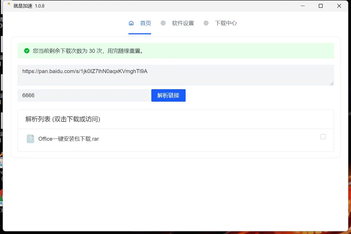 【资源名称】:就是加速【资源版本】:1.08【资源大小】:200M【测试机型】:win11【资源介绍】:由就是加速作者开发的就是加速windows桌面客户端来啦,可以一键批量下载盘的文件,包括文件夹,速度可达到满载。页面简洁无任何公告,操作简单上手容易,有需求的可以尝一下鲜。在客户端软件设置->token输入 kelongwo 可增值解析次数链接:https://pan.xunlei.com/s/VNlm_pK-Lzsp0jUODA6kvIcdA1?pwd=3wem#拿走吱一声