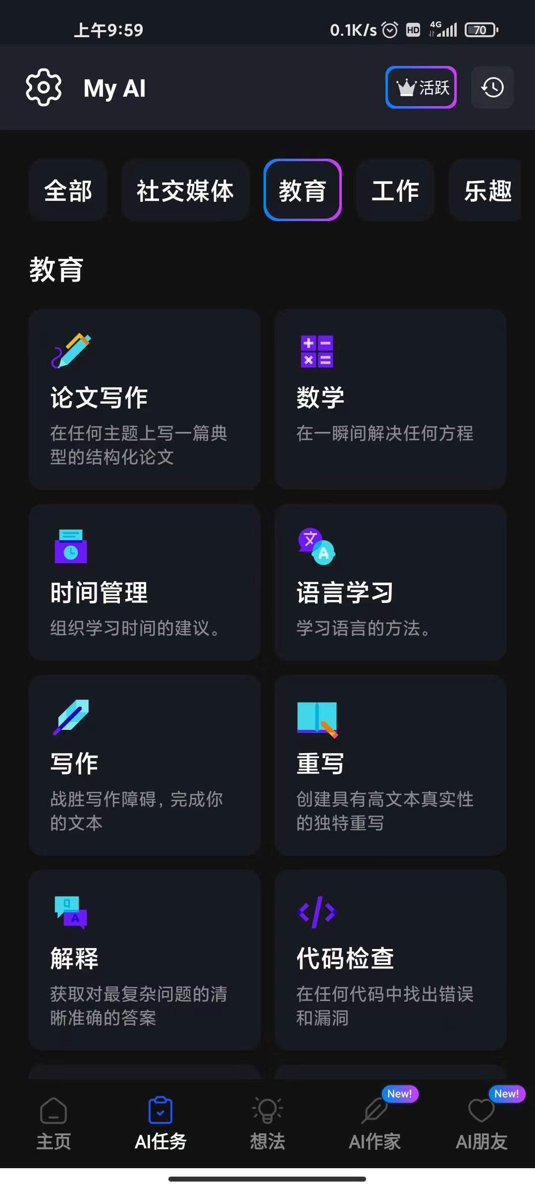 智能Ai助手,游戏,营销,论文,编程,提问,翻译等等,应用非常广泛,能够高效地完成各种任务